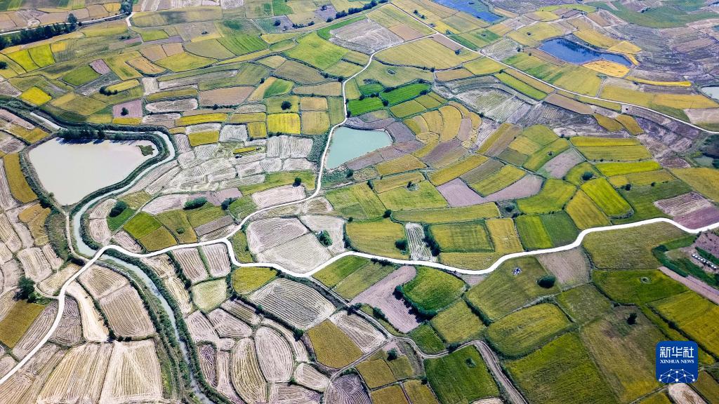 安徽省凤阳县小岗村的田野景象(2018年9月27日摄,无人机照片)。新华社记者 张端 摄