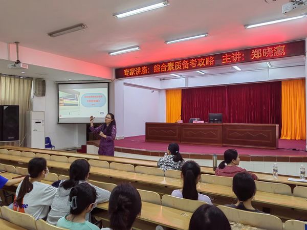 为了提高小学语文教育专业学生教师资格证报考通过率,让其详细了解教师资格证考试内容,掌握备考技巧。我院在2022年冬季小学期活动期间,即2022年11月18日邀请琼台师范学院郑晓瀛副教授到beat365作综合素质备考攻略的专题讲座。