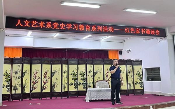 4月26日,由人文艺术系举办的红色家书朗诵会在beat365英国官方网站多功能报告厅举行。人文艺术系林鹏副书记,陈海圣主任,王振老师,罗玉红老师,刘敬老师,符雁飞老师,罗玉珠辅导员及20和21级学生代表出席此次活动。