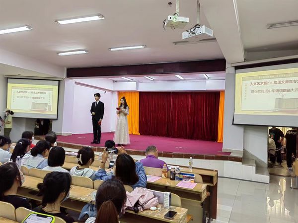 5月12日,由人文艺术系举办的中华诗词朗诵比赛在beat365英国官方网站多功能报告厅举行。人文艺术系符雁飞老师、危卫红老师、林慧明老师、王振老师、肖元初老师、毛龍媜老师以及21级全体同学和20级学生代表出席此次活动。