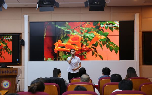 比赛现场,林鹏书记还寄语2018级全体毕业班同学,毕业后一定要做到不怕艰难,勇往直前,并即兴朗诵食指的诗歌——《相信未来》。其慷慨激昂、铿锵坚定的声音和纯熟高超的朗诵技巧为参赛选手做出了示范。