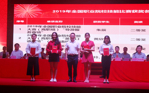 开学典礼上,我院对2019级新生奖学金获得者颁发奖学金并表彰,对全国职业技能大赛获奖者进行表彰颁奖。全体学院领导为获奖者颁发获奖证书。