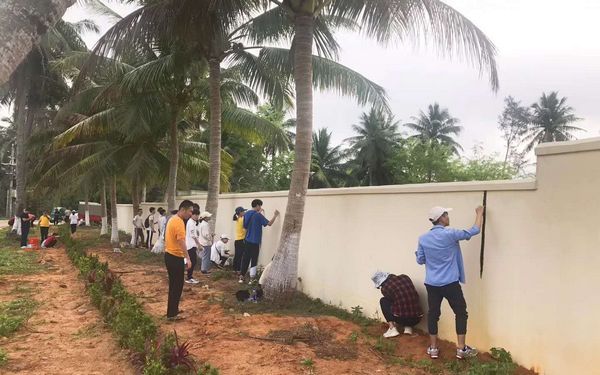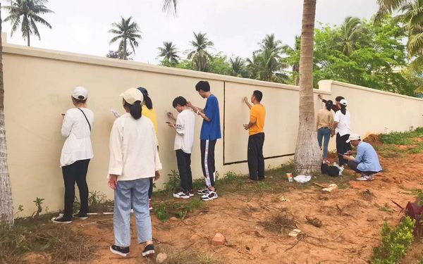日出还没有穿透云层,空气里还透着凉气,3月30日,我系专职辅导员罗玉珠老师带领文学和艺术类专业师生一行32人来到了文昌市东郊镇清港村开展扶贫活动,师生联手彩绘文化墙,与干部群众共助乡村文化振兴,展示师生的文化风采和教学成果。