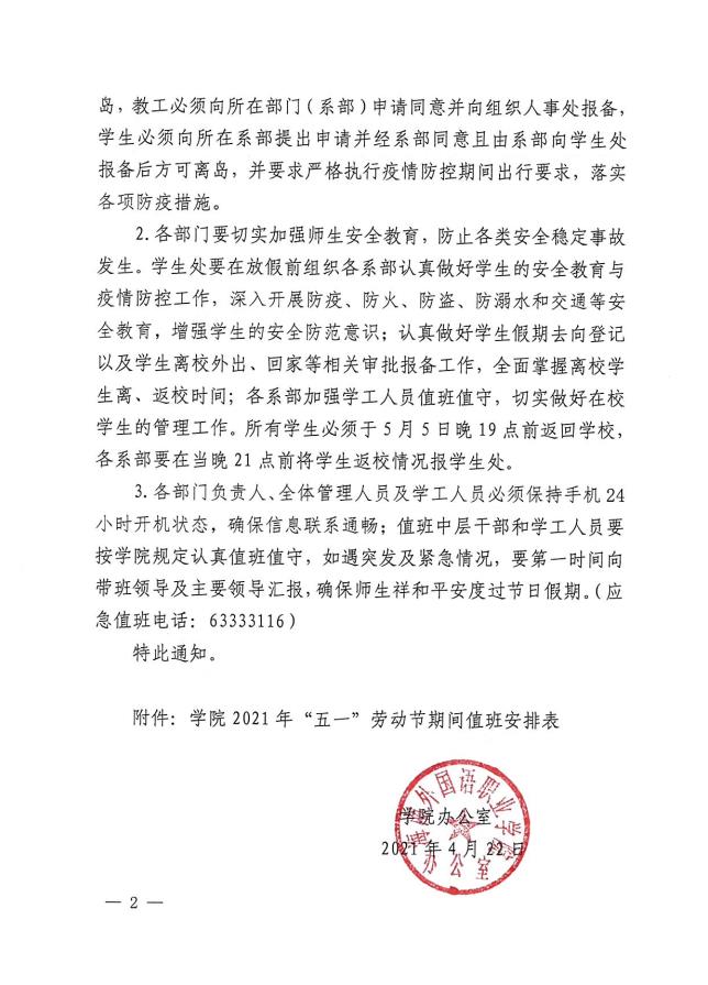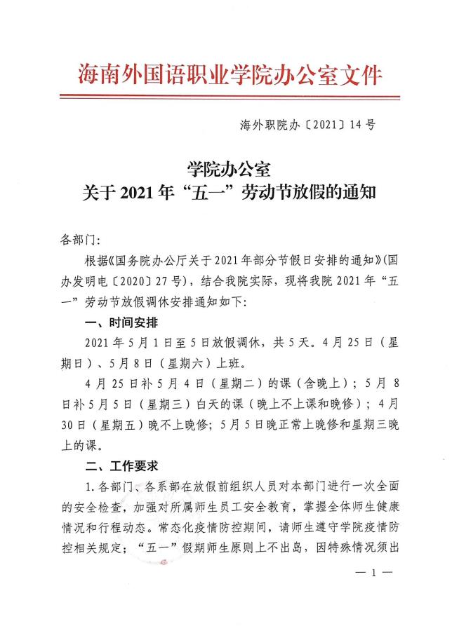 学院办公室关于2021年“五一”劳动节放假的通知