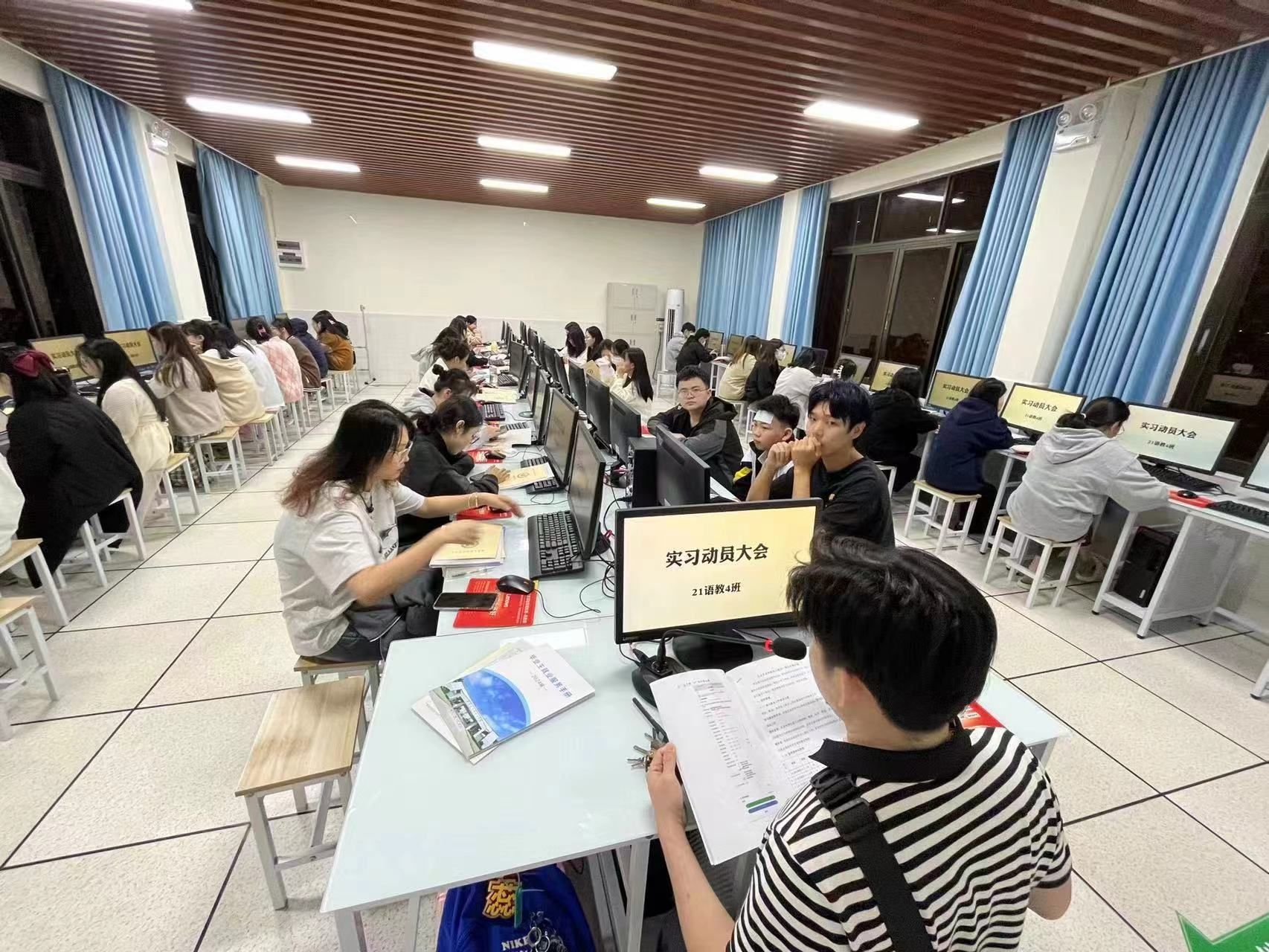 2023年12月7日,2024届毕业班的所有班级在学院实习就业工作领导小组的统筹下开展了实习就业指导主题班会。班会上,各班的实习就业指导老师向毕业生传达了学院的实习就业工作安排,强调了在实习就业过程中的安全问题,并现场指导毕业生如何进行实习和就业材料的填写和提交,例如三方协议填写过程中需要注意的问题等,还详细向学生讲解了《毕业生服务手册》,让学生清楚如何通过不同的形式提交就业材料。有的班级还现场收集学生的简历,并指导学生进行修改,有的班级分享了求职技巧,帮助提高学生的求职竞争力。