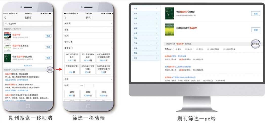 期刊全文数据库,刊物、文献一体化统一检索。检索结果可二次检索、筛选和排序,提供精准知识服务(筛选字段有关键词、基金、机构、学科分类、重要期刊、作者、年份等;排序字段有学术性、相关性、时间升降序等)。