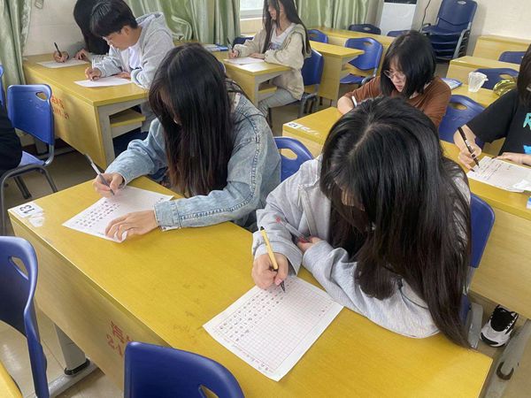 书写内容不固定,要求格式规范,字迹工整,如能融入自我风格尤佳。经过同学们前期的书法准备,比赛群情激昂,最后将由评委老师们评选出每班一等奖一名,二等奖两名,三等奖三名。