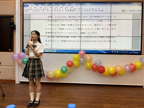 5月13日,上午9点至11点,2020级商务日语、应用日语专业学生在沉浸式教室举行日语演讲比赛活动。本次活动评委是程慧慧老师、中山老师、张方老师和王纾宁老师。本次演讲比赛前各位参赛选手在赛前都做了充分的准备。在着装选择、言语和动作的搭配以及排练时间规划等方面都做了精心的准备,在比赛中都发挥了自己的特长!主持人由20级商务日语1班的张浩杨和20级商务日语2班的何乐担任,赛前由张方老师辅导他们的台词朗读,经过几次的排练辅导,他们声音洪亮,发音标准流利。