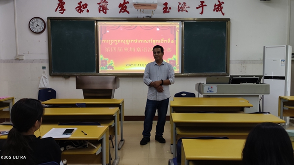 2021年11月17日下午三点,在2404举行了“第四届柬埔寨语演讲比赛”。 参加本次演讲比赛的是20级柬埔寨语班大二的学生,担任本次的评委老师分别是柬埔寨语教师符礼媚老师和柬埔寨语外教王虎老师。本次演讲的主题的“我的规划”。