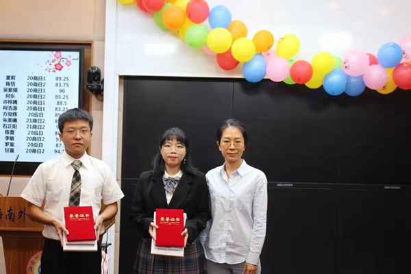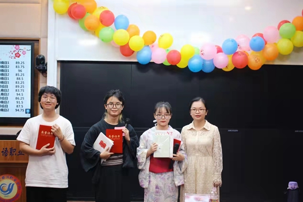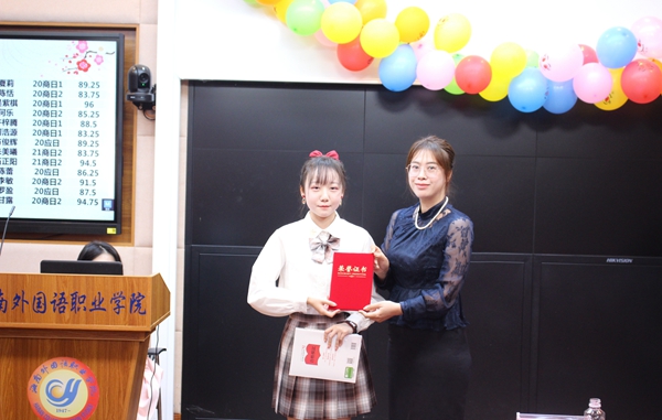 最后,评委老师们为获奖选手颁奖。20商日2班李可心同学获一等奖;20应日符传牧、20商日1班吴紫棋两位同学获得二等奖;20商日2班甘露、20商日2班代哲希、21商日2班石正阳三位同学获得三等奖;20商日1班黄梓源、20商日1班夏莉、20应日方俊辉、20商日2班李敏四位同学获得优秀奖。