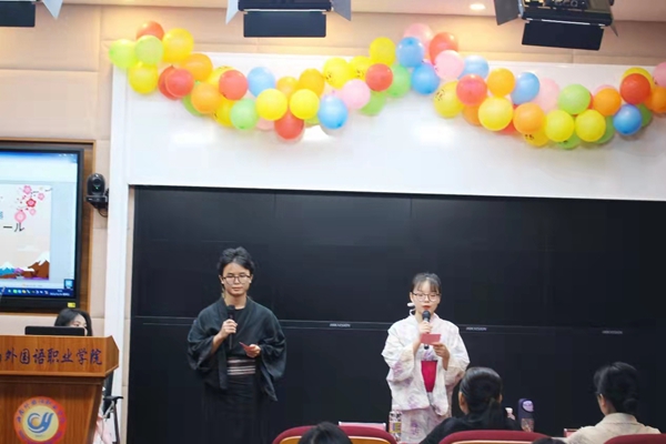 主持人宣布比赛开始,同学们依次登台朗诵,他们用大方的仪态、轻柔的音乐、高昂的语调,带动现场的气氛,让现场的评委老师和观众感受到日语不一样的魅力。