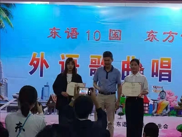 本届“东方10国,外语歌曲唱起来”歌曲大赛不仅丰富了校园文化生活,突出了外语特色,也为我们莘莘学子提供了一个展现自我、努力成长的平台,诠释了青春与理想同行的含义。