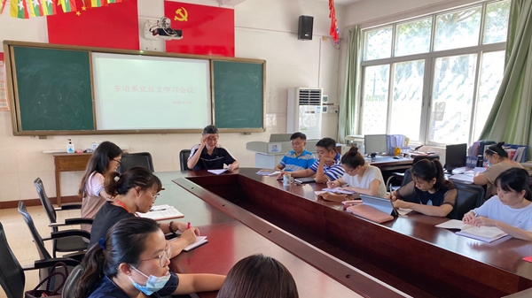 为庆祝中国共产党成立99周年,勉励广大党员不忘初心,牢记使命,也为贯彻“我为加快推进海南自由贸易港建设做贡献”活动要求,6月24日,东语系党总支部在系会议室开展了“迎党的生日、讲战疫故事、悟初心使命”为主题“的迎“七一”党日活动,同时围绕海南自由贸易港如何从我做起进行了学习与研讨。在学习中,第四支部的刘思洋、王爱云两名学生党员疫情期间的志愿服务事迹深深感动了每一位在座的党员,大家表示要培养出更多的像这两位学生党员同志一样无私奉公全心全意为人民服务的同志出来,要一代一代的传承下去。第三支部则讲了疫情期间在缅甸学习与工作的韩飞、王自梅两名优秀学生的事迹,这两名学生虽然身在国外,但时刻不忘作为入党积极分子的身份,为促进中缅胞波友谊添砖加瓦,为困难的缅甸群众募捐了一批口罩与防疫物资。其他党员同志也讲了身边的防疫小故事,极大的感染了每一个人,大家表示,在以习近平同志为核心的党中央的正确领导下,中国人民将彻底战胜疫情,迎来完全胜利。同时在王诒奎书记的带领下,大家围绕“我为加快推进海南自由贸易港建设做贡献”开展了讨论学习,王诒奎书记强调,党员同志们要坚定不移贯彻落实习近平总书记“4·13”重要讲话、关于海南工作的系列重要批示指示和中央12号文件精神,万众一心决胜全面建成小康社会,奋勇争先推动建设海南自由贸易港。各位党员同志也表示,要为海南自贸港作出更大的贡献,培养出更多的外语人才。