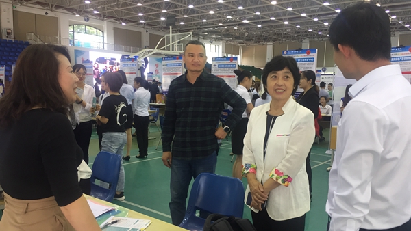 东语系主任郭艳萍教授到招聘会现场与我系合作企业进行交流,了解我系应届毕业生今年的应聘情况。