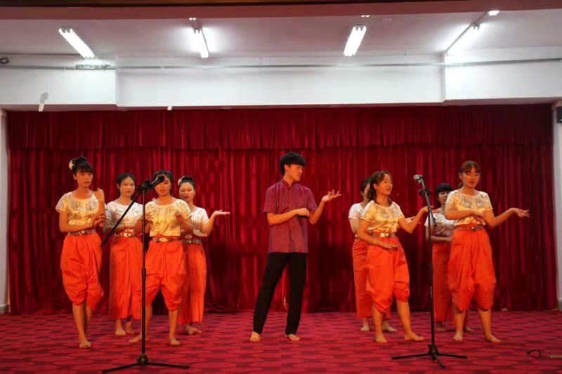 柬埔寨语专业学生在表演柬埔寨歌曲《阿拉比亚》