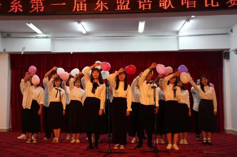 11月18日晚,东语系在多功能报告厅举办了第一届东盟语歌曲比赛。东语系党总支书记王诒奎、系主任郭艳萍教授、耿铁珍教授以及东盟7+1国语种专业外教、专职教师出席指导,东盟7+1个语种专业全体学生参加了比赛。东语系日语和韩语专业的师生也到场观看。