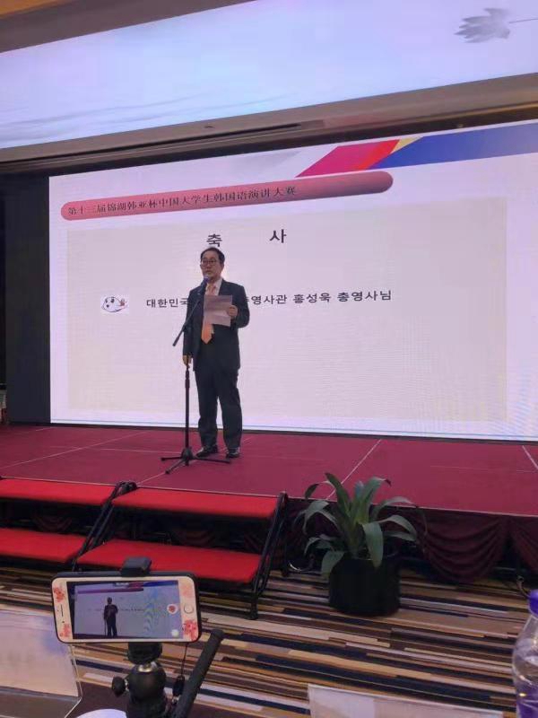 本次大赛一共有11所高校参加(16名学生作为参赛选手)。当天大韩民国驻广州总领事馆总领事洪性旭出席现场致开幕词,同时以洪性旭领事为首,参赛各高校一名教师出席作为评委进行了整场比赛的评审活动
