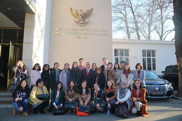 2019年3月21日,由印尼驻华大使馆主办的中国高校印尼语专业发展研讨会在北京开幕。印尼语专业教师利倬冰与魏旺艳2人应邀参会。本次参会的高校有:北京外国语大学、上海外国语大学、 西安外国语大学、广东外语外贸大学、天津外国语大学、广西民族大学、云南民族大学、青海师范大学、广西民大相思湖学院、浙江越秀外国语学院、吉林外国语大学、海南外国语学院,共12所,我院是唯一的高职院校。会议地点在印尼驻华大使馆,由教育参赞Yaya Sutarya先生主持下,于21日开幕,23日顺利闭幕。印尼驻中国兼驻蒙古国大使H.E.Djauhari Oratmangun阁下出席开幕式并发表致辞。他表示,印尼语正逐步成为世界性的语言,印尼政府愿意同中国高校一起推动印尼语在中国的发展。大使阁下还向参会的每所高校赠送了一套印尼传统乐器----昂格隆。
