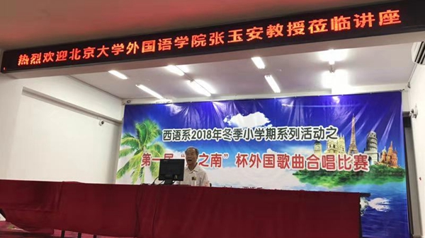 张教授还指出海外院是海南省唯一一所外语类院校,在海南省的作用和地位不可低估,在新时代肩负着重大的责任和历史使命,因此希望作为海外院的一份子,每一位教师和学生都要更多地了解跨文化交流的理论,更有效得地进行跨文化交流的实践。