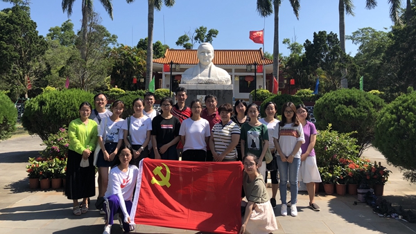 下午两点,所有同志乘车从学校出发。经过大约一个小时的车程,抵达位于文昌市昌洒镇古路园村的宋庆龄祖居。宋庆龄祖居坐落在一片果树环抱的山丘上,周围绿树成荫,环境幽静。国母宋庆龄的高祖、曾祖、祖父3代都居于此地,其父宋耀如先生于1861年出生在这里。为纪念宋庆龄及其家族在中国近现代历史上留下的深远影响,文昌县人民政府于1985年修复宋氏祖居。在宋庆龄基金会和海内外友好人士的支持下相继兴建起庆龄陈列馆、宋庆龄植物园,还在祖居北边竖起了总高达3.2米的宋庆龄汉白玉雕像。所有党员在进入园区之后,首先瞻仰了宋庆龄汉白玉雕像,然后集体在雕像前合影。紧接着参观了宋庆龄陈列馆。庆龄陈列馆是一座庭院式古建筑,里面展出了大量的历史照片和珍贵文物,生动翔实地再现了宋庆龄光辉的一生。