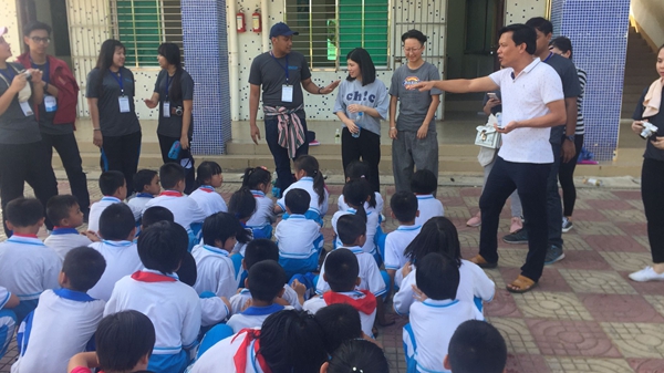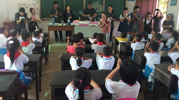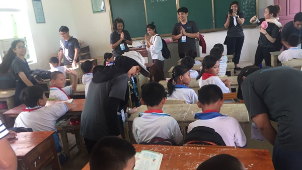 泰国学生们的热情不减海南夏日的骄阳,在经过一段时间的交流认识,我们分派成6个小组,深入冠南小学班级,教小学生们泰国的合十礼,泰国的儿歌,和小学生们一起玩游戏,热闹非凡。