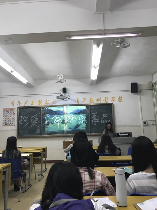 系党总支张伟书记组织东语系在校18个班级开展了各种各样的禁毒宣传活动,要求各班主任利用班会课观看“珍爱生命,远离毒品”视频,以生动形象的视频告诉同学们毒品的危害性,提高了学生对毒品辨别能力,增强了自我防护意识;为把宣传工作做得扎实有效,同时还通过展示宣传资料来进行宣传,让学生了解珍爱生命,远离毒品的重要性。同时出版了一系列版报等方式进行广播宣传,动员所有学生能积极参与到活动中。