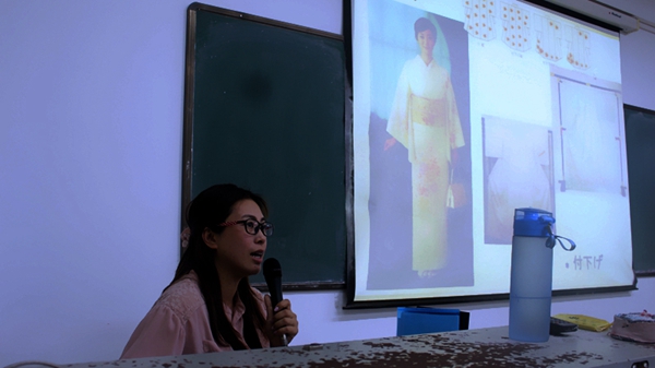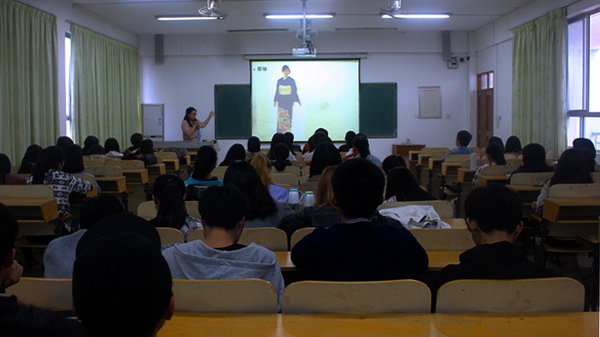 前来听讲座的不仅有她的学生,还有许多从其他系中赶来的对日语感兴趣的同学。教室里面坐满了人,讲座的过程中内容十分有趣气氛轻松。讲座与我们专业知识紧密相关,但是却不单一,面对着鲜活的教学对象,中山老师和大家互动,全程用日语来讲解,学习氛围十分浓厚。智慧的教师必然没有相同的课堂。讲座过程中,不仅可以领略日本各行各业的艺术,还开阔视野。