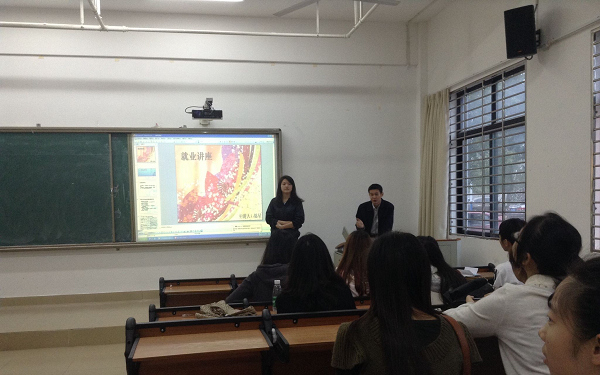 2013年12月16日下午4:30于我院BE202教室举行了东语系日语专业优秀毕业生就业讲座。东语系特邀08级日语专业毕业生胡星为在校学生及毕业班的同学就就业方面进行了经验分享与交流。