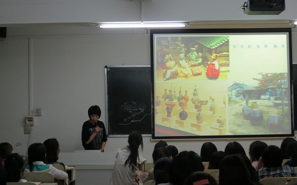 夜幕降临,多媒体8室渐渐坐满了我院韩语专业的学生,大家都为本学期的韩语专业学习经验交流会而来。晚上8点,会议正式开始,首先由许副主任介绍了整个会议议程,其中特别介绍了本学年的教学安排与韩国公派留学部分,随后便由11、12应韩班的4位优秀代表进行韩语学习经验交流,她们都把自己平时的学习方法总结出来并制作成PPT供新老生们作参考,也为韩语专业的其他学生提供较好的方法与经验。当然,更有刚从韩国留学归来的郭海燕老师和11应韩班的倪玉英同学与大家分享她们有趣的留学生活,让韩语专业的学生们更能切身体会到学习韩语的乐趣,增加学习的动力。整个学习交流会持续了2个小时左右,同学们都认真听讲并做好笔记,相信通过本期的学习经验交流会,会让更多的同学获益。