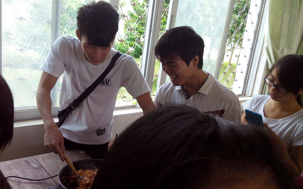 2013年10月18日上午,韩国外教金仁焕老师带着12级应韩班的同学在2203教室制作了韩国著名美食——泡菜拉面。让同学们从美食中感受韩国魅力。