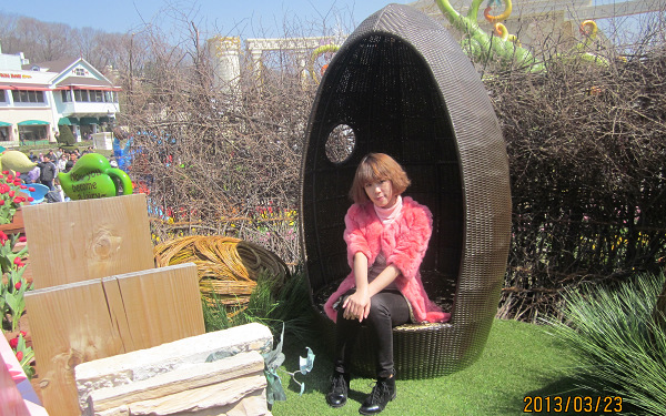 这就是有韩国最早的木质过山车“T express”,是世界最陡峭的过山车,吸引了众多年轻人前来乘坐。“ T express”打破了国内外各种记录,成为全世界过山车迷们最受欢迎的游乐设施,从77度坡面上落下的落差体验以及长达3分钟的运行时间成为其特征。在到达爱宝之前院长就跟我们讲:由于是周六,爱宝人特别多,玩T-express的人下午特别多,让我们进爱宝后第一站就去先玩T- express。的确,当我们冲进爱宝直奔T- express,但还是等了一个半小时才体会到这“世界”型惊险与刺激。在77度坡面落下的刹那感觉心脏已经暂停,抓不到任何依靠,孤独、恐惧、后悔...五味杂陈骤然而生,3分钟,仅仅3分钟感觉了一次生死的轮回,深感生命的可贵,以后的每一分钟我要过的更加充实有意义。