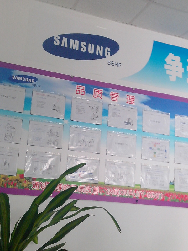 说真的要进入三星工作可真的面临了很多的面试,首先就是电话面试,因为我们都不是在本地,所以人事部就通过电话面试招收我们到公司去,到了公司之后人事部的部长就先让我们到会议厅对我们进行了简单的询问和讲解我们将要进行的工作,然后到了生产部,我们等待从韩国出差过来海南的朴姐姐,朴姐姐一来就给我们不同的资料,要我们当场笔译,当场筛选了两个人出来,也很庆幸自己是其中的一个。