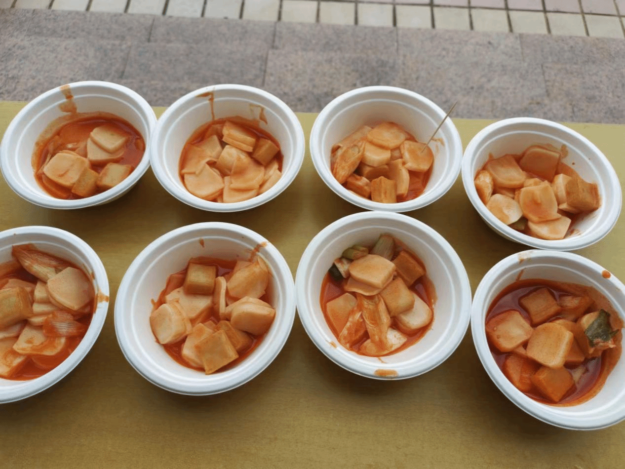 (1)传统韩国菜肴展示:参与者现场品尝到辣炒年糕与鱼饼、紫菜包饭和韭菜饼以及其他韩国传统美食;