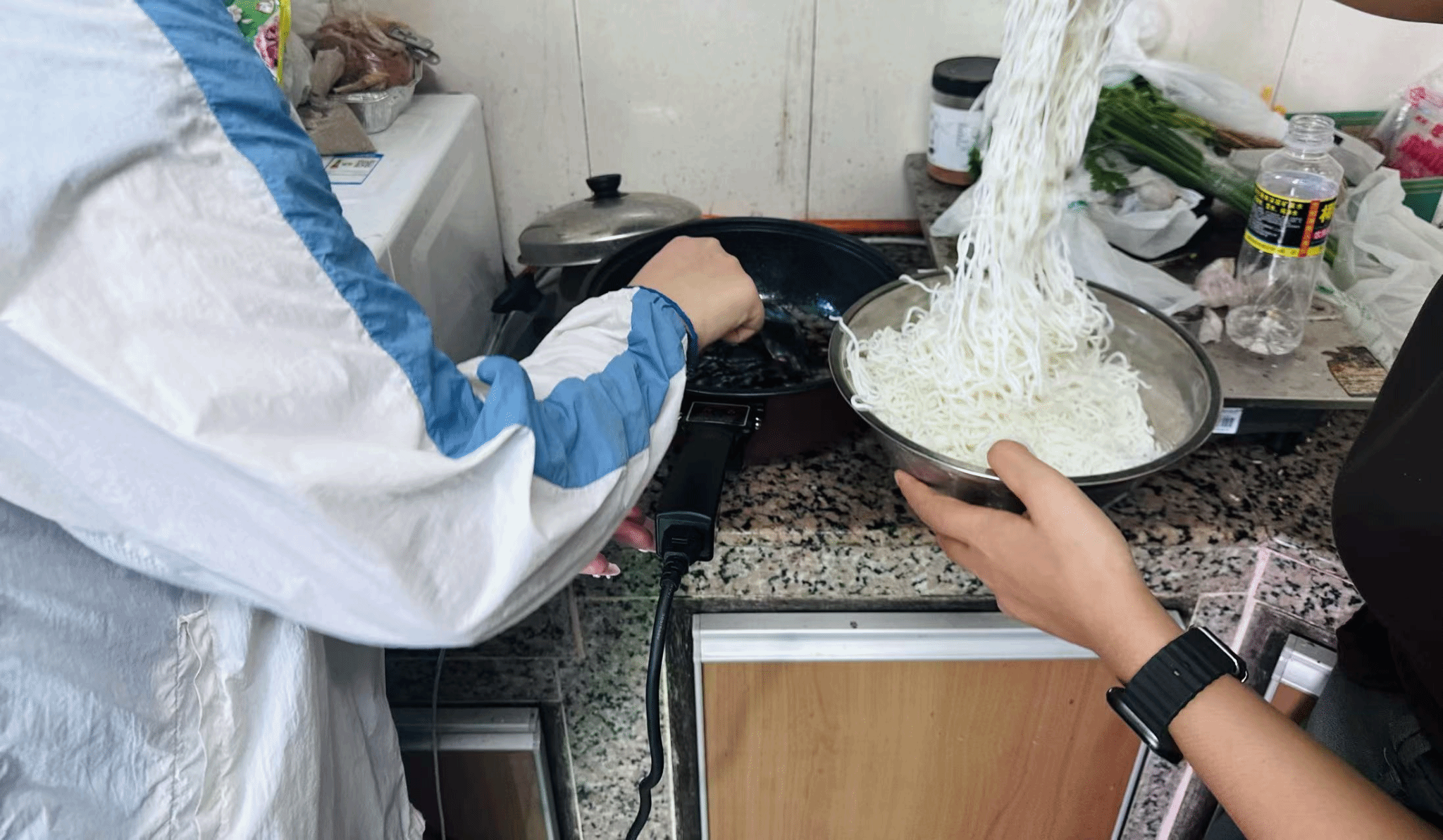 20241114日下午,老挝语外教王阿金和老挝语教师梁瑜带领23级应用老挝语专业学生积极参加冬季小学期老挝美食制作与饮食文化体验活动,并在外教宿舍进行老挝美食制作实操。