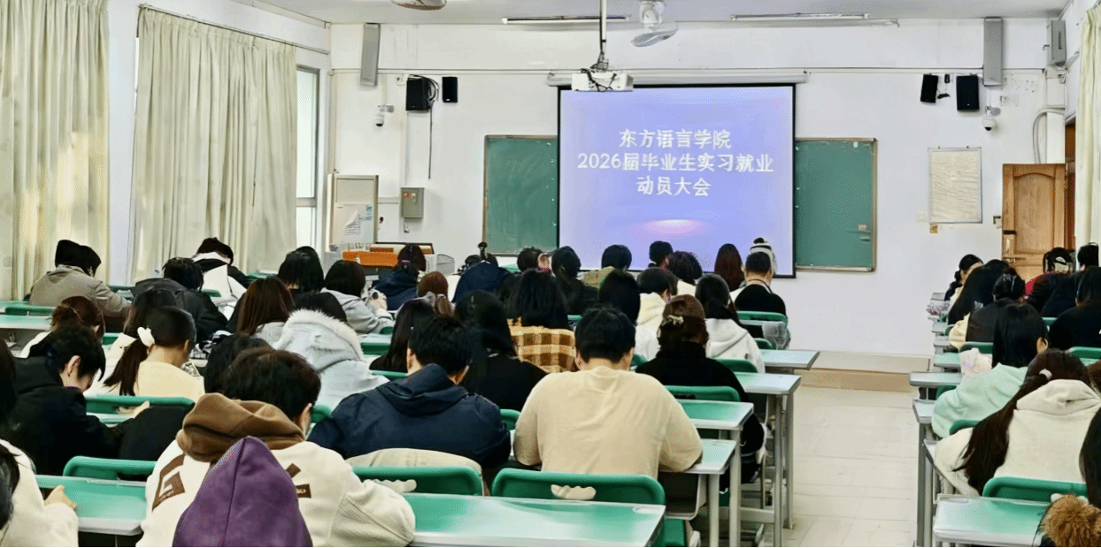 为切实做好毕业生实习与就业指导工作,帮助毕业生明确实习要求、树立正确就业观念,确保学生顺利完成从校园到职场的过渡,并为后续工作顺利进行开展做好铺垫。2005年11月19日,东方语言学院在多媒体17教室隆重召开了2026届毕业生实习与就业动员大会。学院党总支副书记于洋书记、就业指导员王纾宁老师、毕业班班主任、辅导员及全体2026届毕业生共同参加了本次会议。