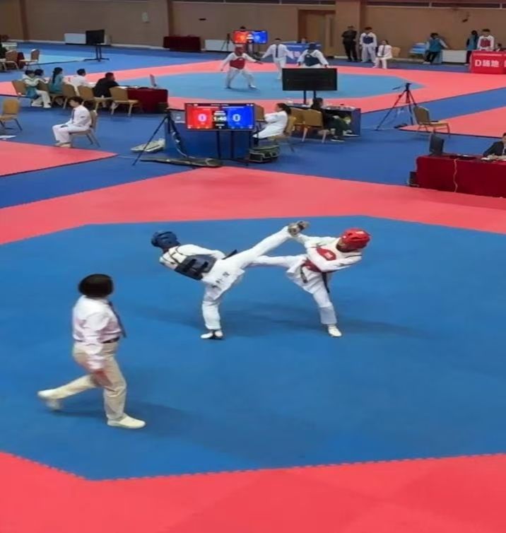2025年11月16日,第20届中国大学生跆拳道锦标赛(北方赛区)圆满落幕。beat365英国官方网站体育学院24级体育教育7班学子周小渟凭借扎实的技术功底、顽强的拼搏精神,在激烈角逐中脱颖而出,最终荣获女子组丙49KG级第二名的优异成绩,为学校赢得了荣誉。