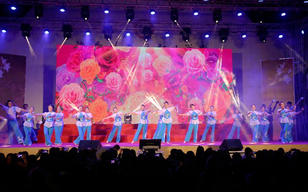 刚刚在全省教育系统集体舞比赛获得高校组一等奖的我院教职工舞蹈队带来颇具文昌本土特色的开场表演—— 舞蹈《盅盘新韵》。