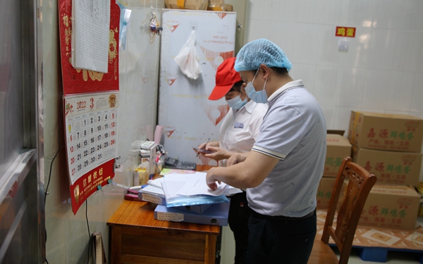 检查中,检查组一行通过实地走访、查阅资料、交谈询问、查看食堂现场管理及人员操作情况等方式对学院学生第一食堂开展食品安全督导检查,并对检查过程中发现的问题提出改进建议。