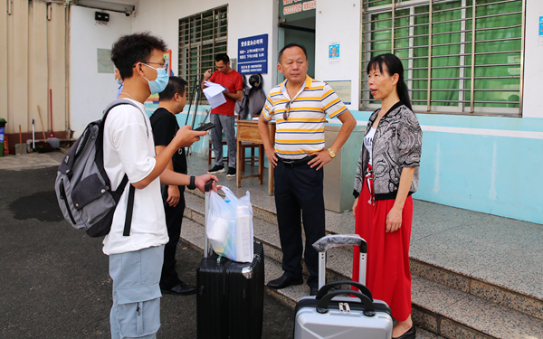 9月12日是我院秋季学期开学老生返校的第一天。上午,学院党委副书记黄丽芹、副院长梁松率队走访校园,实地了解学生返校情况,慰问并指导各岗位各环节的学生返校接待服务工作。