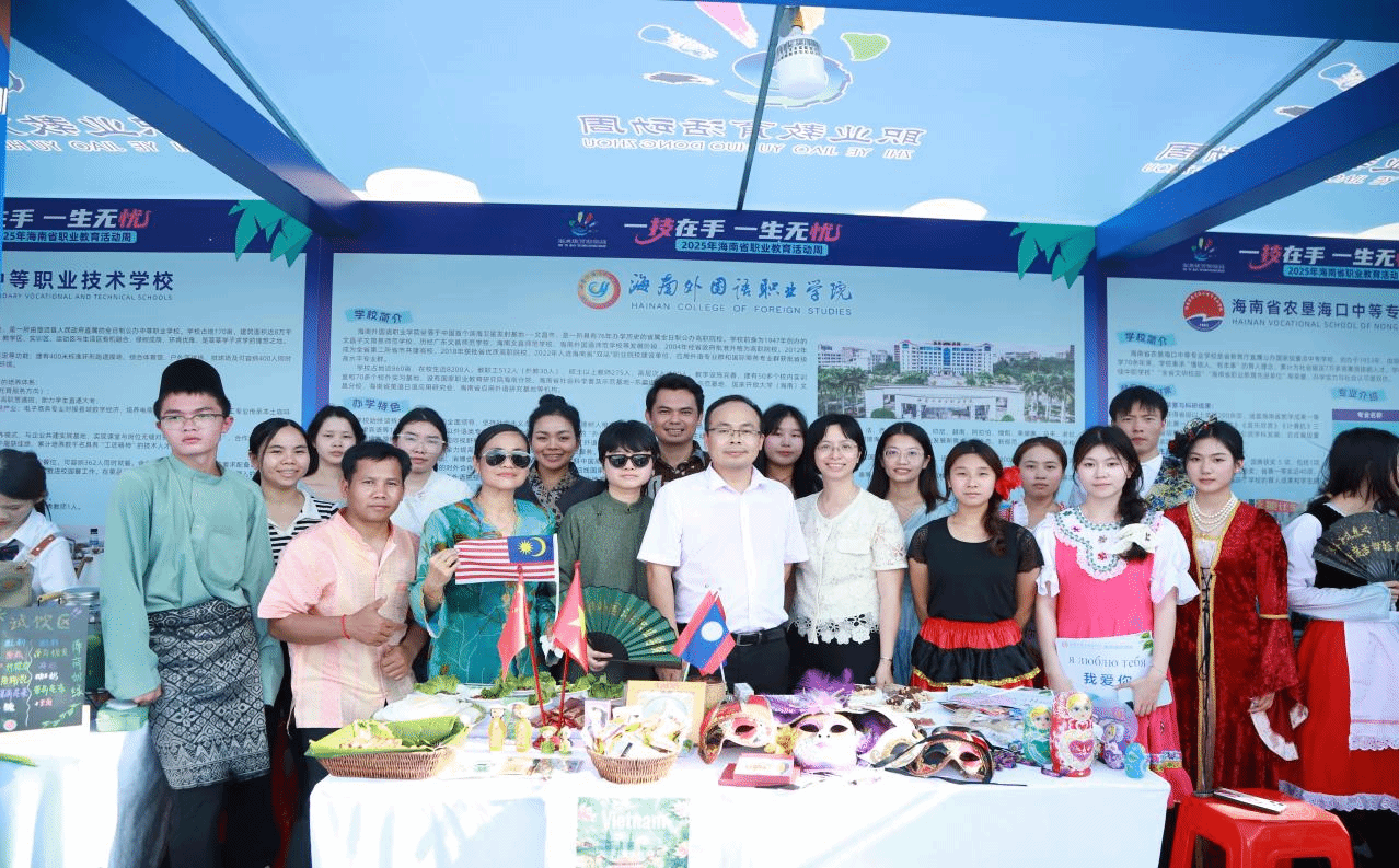 根据海南省教育厅安排,学校于2025年5月17日在海口云洞图书馆参加省级职业教育活动周服务展示活动,展示学校“外语+”教育教学成果,让广大群众感受丰富多彩的世界语言文化,激发外语学习兴趣,锻炼学生职业技能,提高学生职业素养,加深社会各界对学校办学特色及教学成果的了解。