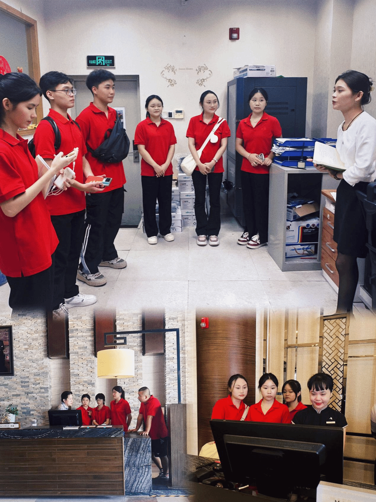 2024年6月20日下午,我院万豪订单班10名学生在郭蔓老师和胡阳老师的带领下,赴海口万豪酒店开展第二次企业课堂。在酒店人力资源部的大力支持和精心安排下,学生们开启了一场沉浸式的企业课堂。