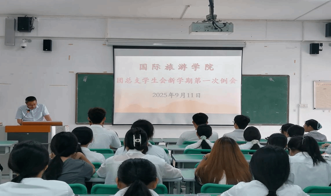 国际旅游学院团总支学生会于2025年9月11日在多媒体12教室顺利召开2025-2026学年第一学期首次全体例会。本次会议由学生会执行主席云春雨主持,学院党总支副书记周群林、团总支书记高潇翔,以及学生会主席团成员、各部门部长与干事全员参会,共同为新学期学生工作谋篇布局。