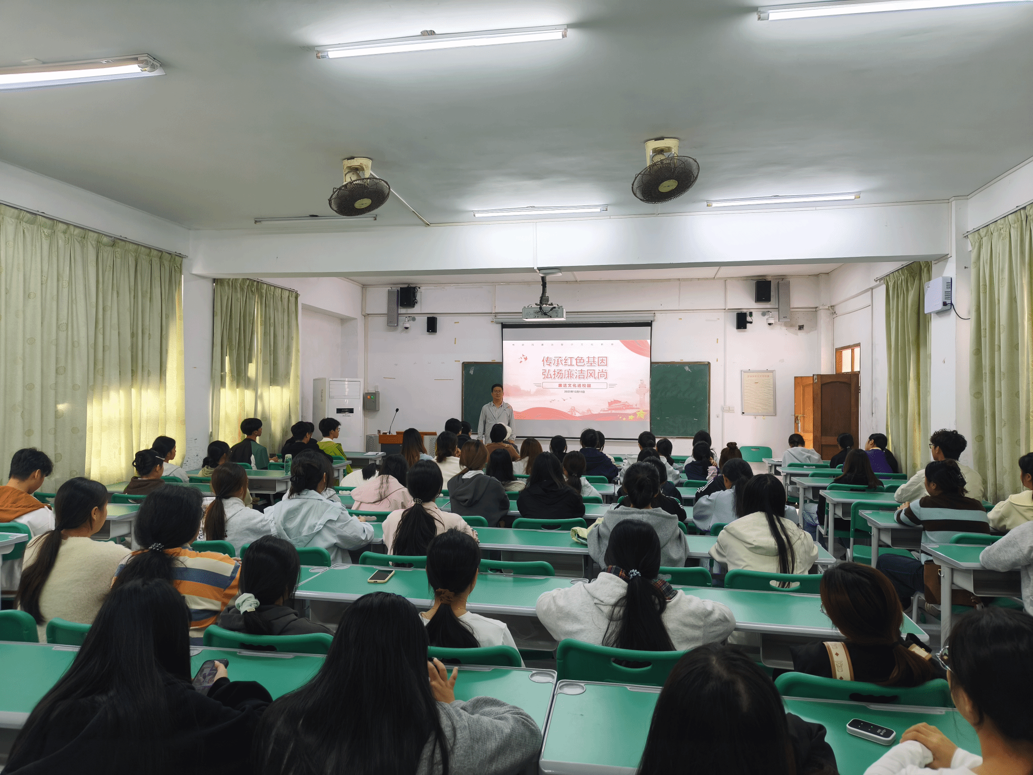 首先,由学院团总支书记高潇翔带头为全院团学骨干及团员代表讲授主题团课。团课围绕“红色铸魂、廉洁育人”的主线,深入阐释了红色基因的时代内涵与廉洁文化的现实意义,结合海南革命历史与自贸港建设新征程,激励青年学子从红色经典中汲取奋进力量,以清正廉洁的品格担当时代使命。团课内容翔实、贴近青年,为后续活动的深入开展奠定了坚实的思想基础。