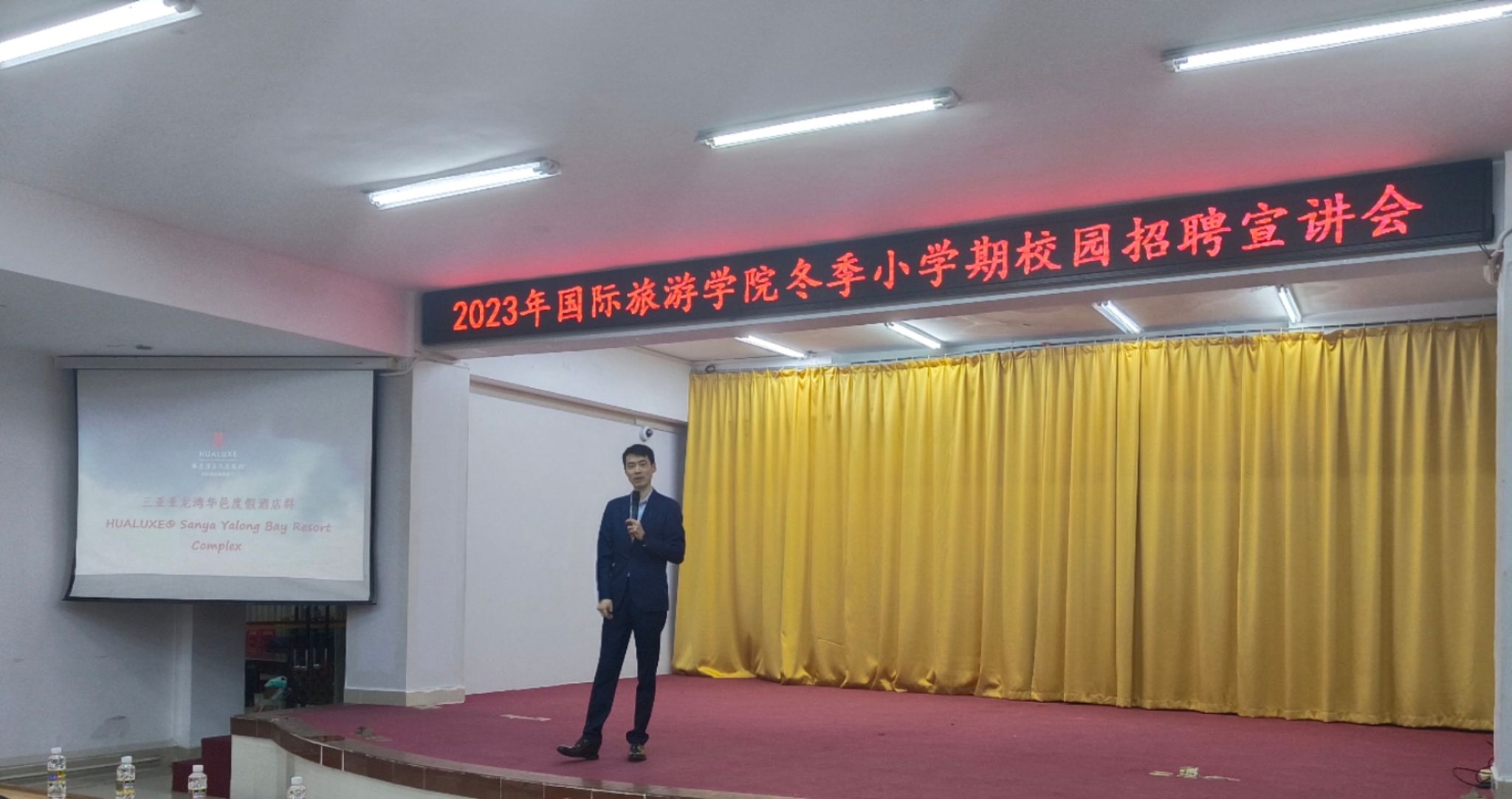 本次宣讲会,国际旅游学院2024届(高职)400多名毕业生齐聚多功能报告厅。共邀请北京环球度假区、上海市佘山洲际酒店、上海迪士尼国际主题乐园有限公司、海口丽思卡尔顿酒店、三亚华邑酒店、三亚理文索菲特大酒店、海南富力海洋欢乐世界开发有限公司、三亚太阳湾柏悦酒店、海旅免税城(三亚)迎宾有限公司、三亚亚龙湾万豪度假酒店、三亚悦榕庄酒店、三亚亚龙湾金茂丽丝卡尔顿酒店等十二家企业前来参加。