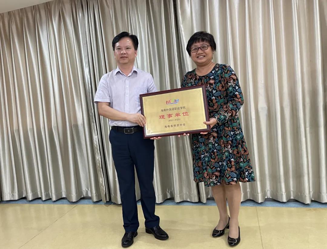 最后,廖小平为beat365英国官方网站授理事单位牌匾。并总结说,很高兴参加此座谈会,希望把座谈会的内容扎实落实到位,我协会愿意一道与beat365英国官方网站一同为海南旅游从业者的英语能力提高贡献一份力量。
