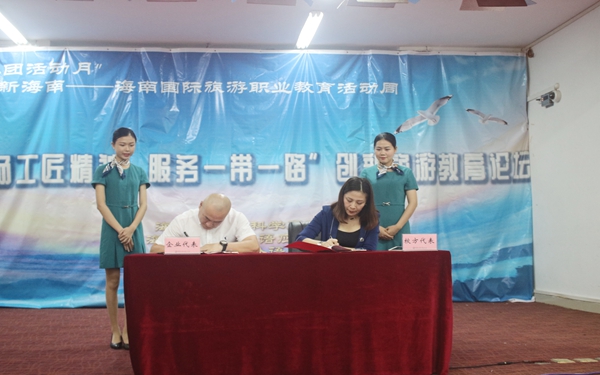 2018年5月8日上午,我院旅游系与三亚湾喜来登度假酒店、三亚崖州湾度假村希尔顿格芮精选酒店、文昌鲁能希尔顿酒店、海口天堡嘉圆实业有限公司(冯塘绿园)、文昌温德姆至尊豪庭酒店、康斯宾悦酒店在多功能报告厅办了“校企合作协议签约仪式”。实训就业处处长许环碧、旅游系党总支主要负责人林明霞、旅游系主任李旭芳及各企业代表出席了本次签约仪式。