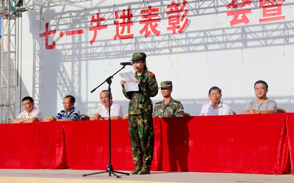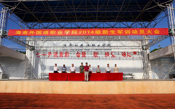 会上,学生处黄守剑处长宣布军训中队编制,并介绍文昌市公安边防支队承训的20名教官;受训新生代表上台发言,代表2014级新生向领导、老师和教官们做出郑重承诺,她表示,全体新生将尊重教官,服从命令,听从指挥,不畏困难,勇于争先,自强自立,互助友爱,爱护集体,百折不饶,超越自我,以优异的成绩向学院、教官汇报。最后,由莫运深副书记宣布2014级新生军训正式开训。