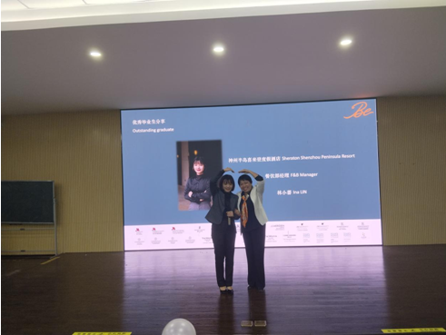 神州半岛喜来登度假酒店餐饮部经理、我院2014届毕业生林小蕃与学弟学妹们分享了她的职业发展之路和在岗位上踏实工作、努力奉献、成长收获的故事。她勉励同学们做好职业规划,以积极的心态和踏实的工作与优秀的企业一同成长,定能收获属于自己的成功。