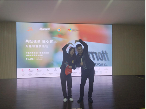 万豪国际集团海南区域26家酒店人力资源相关负责人,我院党总支书记林明霞、副书记周群林、学院副院长谢孟出席宣讲会,我院200余名师生代表参加宣讲会。