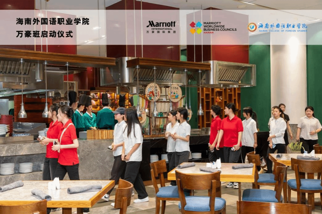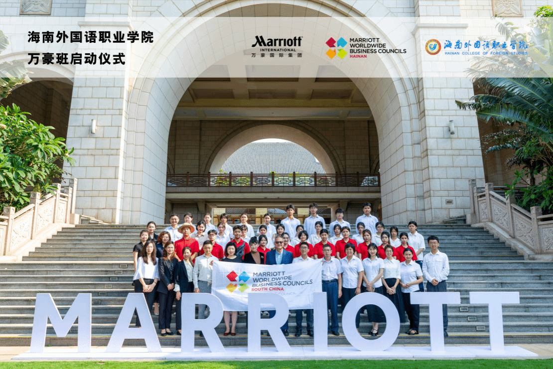 根据国际旅游学院与万豪国际集团的合作计划,我院将开设万豪国际品牌订单班,为优秀学子提供一条进入万豪旗下各酒店实习和工作的“绿色通道”。5月8日,我院副院长谢孟、副书记周群林、酒店管理与数字化运营教研室主任郭蔓以及教师代表带领11名万豪班成员与20名学生代表来到海口万豪酒店参加开班启动仪式并参观酒店。